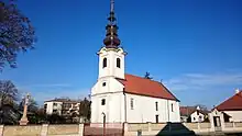 Church of the Saint Archangel Michael (Serbian Cyrillic: Црква светог Архангела Михаила, Croatian: Crkva svetog Arhangela Mihaila) in Darda is a Serbian Orthodox church in eastern Croatia. The first orthodox church at the site of contemporary church was constructed in 1726, while the current building was completed in 1777.[1] The local Eastern Orthodox parish in Darda was formally established in 1742.[2] The church is a single-nave building with a semicircular apse and a bell tower on the first floor.[1] The bell tower is covered with a late baroque bulb with two lanterns.[1] It was consecrated by the Bishop of the Eparchy of Buda Dionisije Popović in 1794.[1] The three church bells, which cumulatively weighed 670 kilograms (1,480 lb), were made in Ljubljana in 1925.[2]