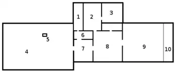 The first stone chamber on the estate was built in 1450, under Jonah of Moscow, at the same time the Church of the Deposition of the Robe was erected, which became the house church of the Moscow metropolitans. After the Moscow fire in 1473, the courtyard burned out, and in 1484-1485 (already under Gerontius of Moscow) the church and chambers were rebuilt. However, after the fire of 1493, the compound was again rebuilt. In the years 1566–1568, on the east side, the church of the Solovetsky miracle workers was added to the mansions, the base of which was used as a main passage to the courtyard of the estate. With the establishment in 1589 of the Moscow Patriarchate, the metropolitan court becomes patriarchal. At the first Moscowin 1597, the complex was renovated by Patriarch Job of Moscow, the chambers were thoroughly rebuilt, while preserving the composition of housing traditional for Russia (two dwellings on the sides of the canopy). At the same time, another church was erected from the northern part of the courtyard the Three Saints of Moscow: Peter, Alexy and Jonah. It was connected to the chambers by a passage with a passage in the underbelly section. Thus, the structure of the courtyard included three house churches.[1]