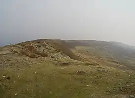 The summit is on a thin ridge and is crowned by a cairn. On the other sides of the valleys: to the west is Pen Twyn Mawr and to the east is Black Mountain.[1]