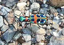 Cicindela chinensis japonica, commonly known as the Japanese tiger beetle, is a subspecies of cicindela chinensis ground beetles native to Asia.[1] It is an aggressive hunter that can reach speeds of up to 9 kilometres (5.6 mi) per hour.