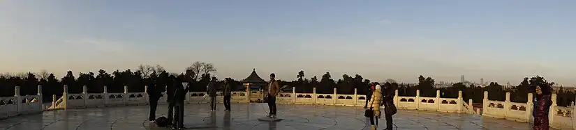 The Circular Mound Altar (Chinese: 圜丘坛; Chinese: Huánqiū Tán) is an outdoor empty circular platform on three levels of marble stones, located in Beijing, China. It is part of the Temple of Heaven.