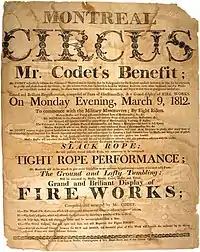 Montreal Circus, Mr. Codet's Benefit. One of Pépin and Breschard's Companies. 1812.