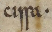 The Anglo-Saxon Chronicle lists Cissa as one of the three sons of Ælle, who in the year 477 arrived in Britain at a place called Cymenshore (traditionally thought to have been in the Selsey area of Sussex[1]). The Chronicle recounts that Ælle and his three sons fought three battles: at Cymenshore in 477, one near the banks of Mercredesburne in 485 and lastly one at Pevensey in 491, where (the Chronicle claims) all Britons were slaughtered.[1][2][3][4] The Anglo-Saxon Chronicle was originally compiled in Winchester, the capital of Wessex, and completed in 891. It was then distributed to various monasteries throughout the country for copying. The different versions were then updated periodically. The chronicle texts chart Anglo-Saxon history from the mid-fifth century until 1154. Before the Norman Conquest of 1066 the manuscripts were mainly written in Old English; post-Conquest the scribes tended to use Latin.[5][6] The original Chronicle was commissioned during the rule of Alfred the Great r. 871–899 over 400 years after Cissa, and historians regard the accuracy of the events and dates listed during the fifth century as questionable.[5][6][7] The sources for the fifth century annals are obscure, however an analysis of the text demonstrates some poetic conventions, so it is probable that the narrative derived from an oral tradition, such as sagas in the form of epic poems.[4][5] The Anglo-Saxon Chronicle was commissioned for a number of reasons, including propaganda—it provided genealogies of the kings of Wessex, showing them in a positive light. (Wessex had absorbed the Kingdom of Sussex, founded by Ælle, during the reign of Egbert of Wessex[5] r. 802–839.)