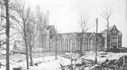 CCNY's Collegiate Gothic campus in Manhattanville was erected in 1906, replacing a downtown campus built in 1849.[66][67][68][69] This new campus was designed by George Browne Post. According to CCNY's published history, "The Landmark neo-Gothic buildings [...] are superb examples of English Perpendicular Gothic style and are among the first buildings, as an entire campus, to be built in the U.S. in this style. Groundbreaking for the Gothic Quadrangle buildings took place in 1903." There were five original neo-Gothic buildings on the upper Manhattan campus, which opened between 1906 and 1908: Shepard Hall, Baskerville Hall, Compton Hall, Harris Hall, and Wingate Hall.[70]