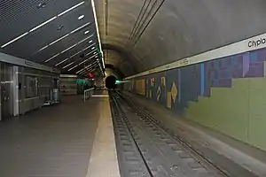 Cityplace/Uptown station (formerly Cityplace station) is a DART Light Rail station located in Dallas, Texas. It is located beneath North Central Expressway (US 75) at Haskell Avenue in the Cityplace district. As the first infill DART station, it opened on December 18, 2000, as the first public subway station in Texas (the Tandy Center Subway in Fort Worth, though open to the public, was a privately-owned light rail).[2]