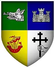 The chief's crest is a boar's head erased, argent, holding in its mouth a deer's shankbone, proper.[4] A Mackinnon legend that is supposed to explain the chief's crest is of a Mackinnon who was hunting on the shores of Loch Scavaig in Skye. After becoming separated from his hunting party the Mackinnon spent the night in a cave for shelter. While preparing some venison which he was about to cook over an open fire he was attacked by a wild boar which charged into the cave. Mackinnon then drove the butchered deer's leg into the mouth of the boar, jamming it open, before killing the wild animal.[21]