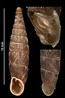 Shell of Clausilia cruciata bonellii (specimen at MNHN, Paris) | |