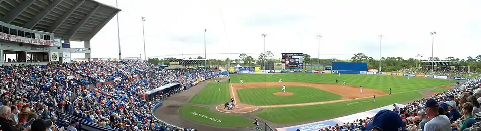 Clover Park is a baseball stadium located in Port St. Lucie, Florida. The stadium was built in time for the 1988 season and holds 7,160 people. It is the spring training home of the New York Mets (who moved from St. Petersburg's Al Lang Stadium), as well as the home to the St. Lucie Mets Single-A team and the Florida Complex League Mets Rookie League team. The stadium shares the same field dimensions of the now demolished Shea Stadium. It also sometimes hosts college games.