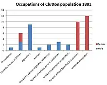 The main industry in Clutton was agriculture[13] until recent years. In the 2011 census the main occupation of Clutton is listed as Professional Occupations.[1] As parts of Cheshire were submerged by seawater during the Triassic period, it is likely that the workers classified as "Workers in various mineral substances" were employed to work in salt mines.