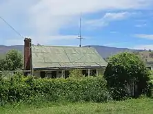 Newton Street, one of the streets of the former village, still appears on maps, as do many of the old village's building allotments. The Monaro Highway follows the alignment of the former Cooma Street, through most of the village site.[49][23] Since 1989, there has been a Rural Fire Brigade at Colinton, with its shed located within the site of the former village.[50][51][52] The Bumbalong Road provides access to a little known bridge across the Murrumbidgee, the Bumbalong Bridge, Colinton,[53][54] that leads to the neighbouring locality of Bumbalong.[55] On the Monaro Highway, where it passes through the old village's site, there is an old cottage that was once part of the village. The disused Bombala railway line still passes just to the west of the old village's site and the remnants of the old level crossing at Newton Street can still be seen, as can the wooden railway bridges over Ingalara Creek[56] and Colyers Creek. To the north, on the Monaro Highway, where the old railway once crossed that road, is the Colinton Rest Area.[57] The locality also gave its name to the Colinton Gorge on the Murrumbidgee[58] and to the Colinton Tunnel, which lies on the old railway between the former stations of Colinton and Bredbo.[59][60][61]