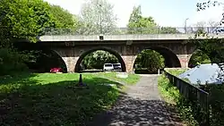 The station had a single platform and was located on the northern side of the single track line just to the west of Colinton Tunnel with a typical Caledonian Railway style small wooden station building with a canopy. The goods yard, also on the north side of the line, was served from the west side of the station and had an open ended goods shed and a bay siding.[5] The Water of Leith lies nearby and an overbridge crossed the railway and the river. A signalbox lay to the west near the junction of the West Mills (corn and paper) goods branch.[6][7]