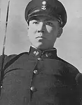 At that time, it was reported that the total strength of the Nanjing Navy was 19 warships, 12 gunboats, 24 special gunboats, and 6 survey craft. There were also 37 small vessels that were under construction since 1942. The navy also included two regiments of marines, one based at Canton and the other at Weihaiwei.[13] A Naval Academy was also set up in Shanghai.[3] The navy uniform was that of the IJN. Ratings wore white jumpers, trousers and cap with the jumper having a large blue collar with a white border, and the name of the sailor's ship in Chinese. Officers wore white jackets and trousers with a white peaked cap. High-ranking officers wore black tunics. That was worn with black trousers and black peaked cap with gold trimming and a woven cap badge. The badge was a wreath with a gold anchor along with a blue sky and sun badge above that.[14]