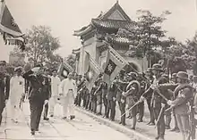 The units that were considered to be the most reliable and loyal by Wang Jingwei included the three Guards divisions in Nanjing (about 10,000 men per division), the 1st Front Army (about 20,000 men), based throughout the Lower Yangtze, and the Taxation Police Corps (about 3,000 men), which had been raised personally by Zhou Fohai and were loyal to him.[3] The Capital Guards Divisions were formed from an independent brigade created in May 1941 in Nanjing, which was considered a success and raised to the size of a division. Shortly afterwards another two divisions were created. These Guards units were given the best equipment, weapons, and uniforms, with a personal loyalty to Wang himself. The Taxation Police Corps was created in Shanghai by Finance Minister Zhou Fohai for his own protection and owed its loyalty to him, and he sought to raise its quality to that of a regular IJA division. It increased in size from 3,000 to around 20,000 men. They, like Wang's Capital Guard divisions, received some of the best supplies and were highly regarded as among the Nanjing regime's best units. They were later moved out of Shanghai and were used for fighting guerillas.[5] Morale and reliability of the average Nanjing Army units was a matter of their location. Intelligence reports from 1944 indicate that those units who were stationed near Nanjing and took orders from Wang Jingwei's government were more effective and motivated than those who were further away and commanded by others.[1]
