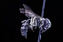 The genus Colletes (plasterer bees) is a large group of ground-nesting bees of the family Colletidae. They occur primarily in the Northern Hemisphere. They tend to be solitary, but sometimes nest close together in aggregations. Species in the genus build cells in underground nests that are lined with a cellophane-like plastic secretion, a true polyester,[2] earning them the nickname polyester bees.[3]