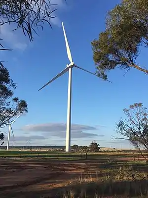 Collgar Wind Farm is a wind farm located approximately 25 kilometres south-east of Merredin, Western Australia.[1] It is operated by Collgar Renewables. With 111 Vestas V90-2.0MW wind turbines,[2][3] and a total installed capacity of 222 MW registered with AEMO,[4] it is Western Australia's largest wind farm. It became fully operational in October 2011[5] and is expected to generate 750 GWh per year on average over the 30-year life of the project.[1]