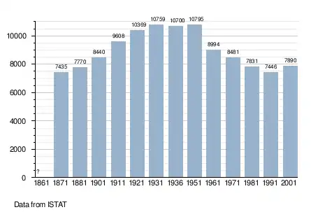 - ↑ "Popolazione Residente al 1° Gennaio 2018". Italian National Institute of Statistics. Retrieved 16 March 2019.