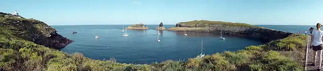 The Columbretes Islands (Valencian: Les Columbretes, IPA: [les kolumˈbɾetes] or Els Columbrets[lower-alpha 1] (IPA: [els kolumˈbɾets]), are a group of small uninhabited islets of volcanic origin, in the Mediterranean Sea, 49 kilometres (30 miles) off Orpesa. Administratively they belong to Castellón de la Plana in the Valencian Community.