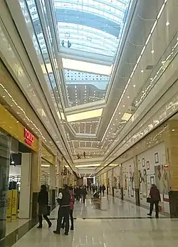 The architect for the second building project was C Concept Design in the Netherlands.[5] The design concept for the project was a super regional mall with a primary focus on the leisure and entertainment component including a 15 screen Kinomax (the second largest in Russia and has an IMAX theater), an ice rink and children's zone. The center contains a "deluxe" retail floor with two level shops and 9.5m high shop fronts. The general contractor for the project was Renaissance Construction and Cushman & Wakefield were the exclusive consultant.[6]