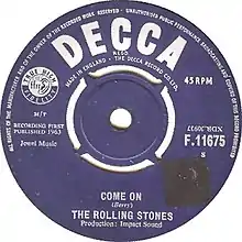 - 1 2 "Come On! The Rolling Stones mark 50 years since debut single with rare live rendition". The Independent. 7 June 2013. Retrieved 2 September 2018.