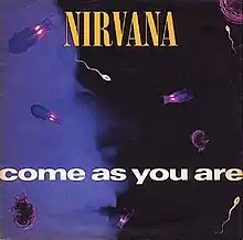 "Come as You Are" is a song by American rock band Nirvana, written by frontman and guitarist Kurt Cobain. It is the third track and the second single from the band's second studio album Nevermind, the single released in March 1992. It was the band's second and final American top 40 hit, reaching number 32 on the Billboard Hot 100, and second UK top 10 hit, reaching number nine on the UK Singles Chart. The single reached the top 10 in eight countries and the top 40 in eleven further countries.
