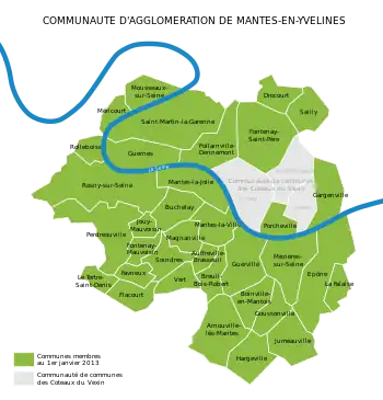 - ↑ (in French) SDCI des Yvelines, Communauté d'agglomération de Mantes-en-Yvelines