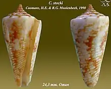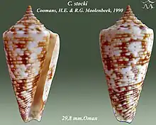 - 1 2 Bouchet, P. (2015). Conasprella stocki (Coomans & Moolenbeek, 1990). Accessed through: World Register of Marine Species at http://www.marinespecies.org/aphia.php?p=taxdetails&id=835420 on 2015-03-16