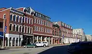 South from the Eagle Hotel on Main Street is Phenix Hall, which replaced "Old" Phenix Hall, which burned in 1893. Both the old and new buildings featured multi-purpose auditoriums used for political speeches, theater productions, and fairs. Abraham Lincoln spoke at the old hall in 1860; Theodore Roosevelt, at the new hall in 1912.[56]