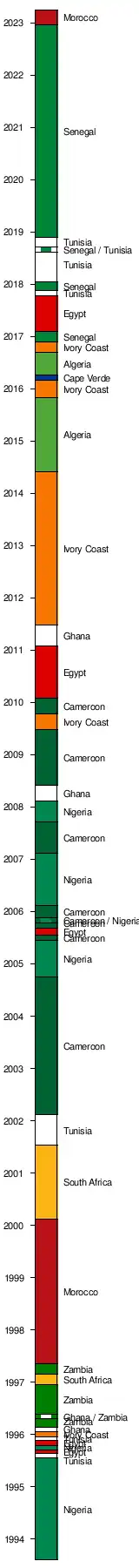 6. From 1995 to 2015, the tournament was known as the African U-17 Championship. The current name was adopted in 2017.