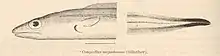 - ↑ Kurogi, H.; Chow, S.; Yanagimoto, T.; Konishi, K.; Nakamichi, R.; Sakai, K.; Ohkawa, T.; Saruwatari, T.; Takahashi, M.; Ueno, Y. & Mochioka, N. (2015). "Adult form of a giant anguilliform leptocephalus Thalassenchelys coheni Castle and Raju 1975 is Congriscus megastomus (Günther 1877)". Ichthyological Research. 63 (2): 239–246. doi:10.1007/s10228-015-0492-5.