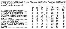 - 1 2 3 4 5 "Connacht Senior League 1990s". csl.sdrypt.com. Retrieved 22 March 2015.