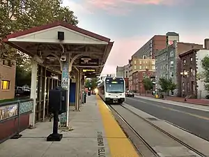 The station opened on March 15, 2004.[1] Southbound service from the station is available to the Camden Waterfront. Northbound service is available to the Trenton Rail Station with connections to New Jersey Transit trains to New York City, SEPTA trains to Philadelphia, and Amtrak trains. Access to the PATCO Speedline is available at the Walter Rand Transportation Center.