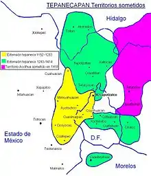He was succeeded by Tezcapoctzin, who ruled from 1248 to 1283. In his time the mexitin appeared, who requested permission to found their second capital on the islet of Lake Texcoco; it was originally named Cuauhmixtitlan in 1274. With his rule Tepaneca military expansion began, establishing partnerships with the Acolhua in the Valley of Mexico, the mazahuaques in the Ixtlahuaca Valley and the matlatzincas in the Toluca Valley, while acquiring a great commercial power. In 1272 he accepted the substitution of Coatlinchan by Tetzcoco in the Triple Alliance of that time, thus consolidating the achievements of his predecessor.