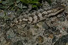 Cordylus macropholis, the large-scaled girdled lizard, is a small (55-77 mm) lizard endemic to the west coast of South Africa.[2] They spend most of their time on and around a single plant species, Euphorbia caput-medusae which only occupies around 5% of the vegetation present.[3] It is thought that they restrict themselves to these plants because they provide safer hiding places than most other shrubs, house a large range of invertebrate prey, and provide good thermal microhabitats.[3] They can additionally be found sunbathing on, or hiding in between rocks, as these could provide protection from larger predators from which their physical adaptations might not provided them with adequate protection.[4]