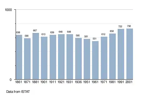 - ↑ "Popolazione Residente al 1° Gennaio 2018". Italian National Institute of Statistics. Retrieved 16 March 2019.