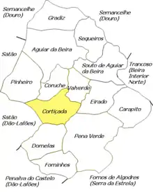 - ↑ "Freguesia de Cortiçada". cm-aguiardabeira.pt (in Portuguese). Município de Aguiar da Beira. Retrieved 5 February 2014.
