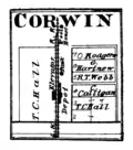 Corwin was laid out by Cyrus Foltz in 1856 and consisted of seven lots near the rail line which ran south out of Lafayette. The town never flourished, though, and was eclipsed by nearby Romney.[2] Later maps sometimes cite the town as Corwin Station.[3]