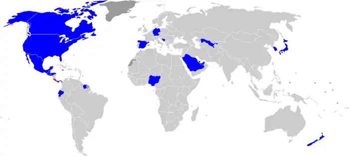 Map of the countries that have played at least one match against Costa Rica so far in the decade: