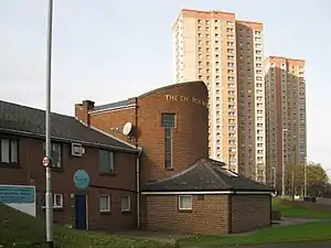 The two tower blocks (Cottingley Towers and Cottingley Heights) situated on a hill at the centre of the estate were at the time Leeds's tallest flats. They were built in 1972 and refurbished in 1989.[5]