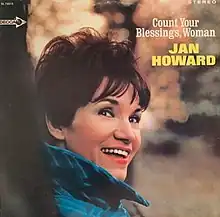 Count Your Blessings, Woman is a studio album by American country music artist, Jan Howard. It was released in June 1968 on Decca Records and contained 11 tracks. Most of the disc featured covers of popular songs of the era. The album's title track was spawned as a single, becoming a top 20 song on the Billboard country chart in 1968. Additionally, the album would reach peak positions on the American country albums chart. It was reviewed positively by Billboard magazine.