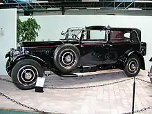 Early roofs for the driver's area were made of a single skin of leather without any structural support, and were held in place between the passenger compartment and the windshield by poppers to allow for easy removal or rollback when the weather allowed.[5] From the late 1920s onward designs used a metal two-skin roof which retracted into a void above the passenger compartment, either manually or electrically.[6]