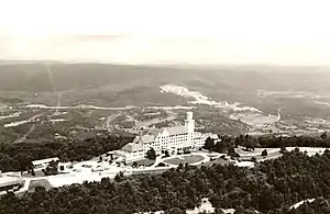 Carter Hall is the signature building on campus. It was originally named The Lookout Mountain Hotel and was built in 1928 by the Dinkler Hotel Corporation and run by Paul Carter, for whom the building is now named. It has been rumored, although not confirmed, that Elizabeth Taylor and Eddie Fisher spent their honeymoon there.[19] It was popularly known as the "Castle in the Clouds." However, since it was completed less than a year before the Great Depression, the hotel soon went bankrupt. It opened and closed several times prior to 1960, when it shut down for the last time. Bill Brock, the grandfather of the college's fourth president, Frank Brock, served on the original board of the hotel.[20]