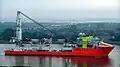 A crane vessel, crane ship, crane barge, or floating crane is a ship with a crane specialized in lifting heavy loads, typically exceeding 1,500 t (1,476 long tons; 1,653 short tons) for modern ships. The largest crane vessels are used for offshore construction.[1]