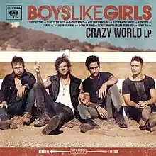 Crazy World is the third studio album by American rock band Boys Like Girls. It marks a departure from the group's original emo and alternative rock sound in favor of a more country style. The Crazy World EP was released on July 17, 2012 with the tracks, "Be Your Everything", "Life of the Party" and "The First Time" to help promote the album. The album was released on December 11, 2012.[1] On November 15, they posted a "Crazy World Song Reveal" page, allowing fans to share a link to it in order to unlock a new song off the new record.[2] On November 16, the new track was revealed as "Stuck in the Middle", and the LP was made available for pre-order.