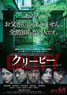 Creepy (クリーピー 偽りの隣人, Kurīpī: Itsuwari no Rinjin) is a 2016 Japanese thriller film directed by Kiyoshi Kurosawa,[4] starring Hidetoshi Nishijima, Yūko Takeuchi, Teruyuki Kagawa, Haruna Kawaguchi, and Masahiro Higashide. Based on the 2012 novel by Yutaka Maekawa, it is about a married couple uncovering the secrets of their new, mysterious neighbor. The film had its world premiere at the 66th Berlin International Film Festival on 13 February 2016. It was released in Japan on 18 June 2016.