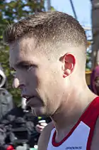 A short crew cut is sometimes referred to as a butch, though with the exception of variant forms, a butch differs from a crew cut in that the top hair is cut a uniform short length.[5] A long crew cut can be referred to in the US as an ivy league crew cut or ivy league.[6][7] A crew cut where the hair on the top of the head is graduated in length from the front hairline to a chosen point on the mid to back part of the crown as a flat plane, of level, upward sloping or downward sloping inclination is known as a flat top crew cut or flattop.[8][9] The crew cut, flat top crew cut, butch cut and Ivy League haircut can be referred to as types of buzz cuts. These haircuts have become popular military-inspired styles for men who want a short and low-maintenance look.[10]