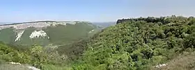 However, in the 5th century, the Ostrogothic ruler Theodoric the Great failed to rouse Crimean Goths to support his 488–493 war in Italy.[2][3] Aside from textual reports of the existence of the Goths in Crimea, both first- and second-hand, from as early as 850,[4] numerous archaeological sites also exist, including the ruins of the former capital city of the Crimean Goths: Doros (present-day Mangup). Furthermore, numerous articles of jewelry, weaponry, shields, buttons, pins, and small personal artifacts on display in museums in Crimea and in the British Museum have led to a better understanding of Crimean Gothia.