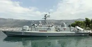 Šibenik (pennant number RTOP-21) is a Končar-class missile boat in service with the Croatian Navy. It was built for the Yugoslav Navy at the Kraljevica Shipyard in the 1970s as Vlado Ćetković (RTOP-402).[3] In 1991 during the early stages of the Croatian War of Independence it was captured by Croatian forces while being overhauled at the "Velimir Škorpik" shipyard in Šibenik.