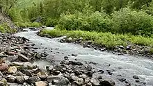 Crow Creek is a stream in the Chugach Mountains, Alaska, US. It is the only notable tributary of Glacier Creek, which enters Turnagain Arm from the north, 12 miles (19 km) from its eastern end.[1] The stream is notable as the site of ongoing gold mining since the late 19th century.
