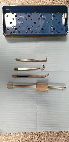 There is evidence of gold dental prosthesis dating back to the Etruscans.[58] Ancient Roman dentists also adopted these tools.[59]