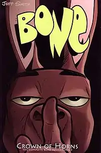 Crown of Horns is the ninth and final book in the Bone series. It collects issues 50-55 of Jeff Smith's self-published Bone comic book series. The book was published by Cartoon Books in 2004. The color version was published by Scholastic Press and released on January 21, 2009.[1]
